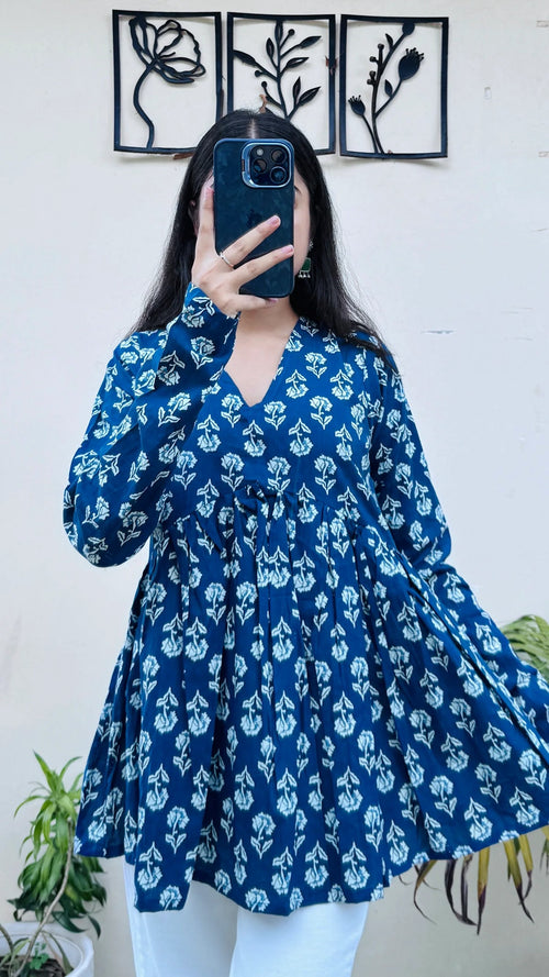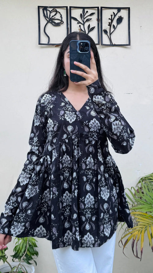 A cotton peplum top is a stylish and feminine top featuring a fitted bodice that flares out at the waist, creating a flattering silhouette. Made from soft, breathable cotton, it offers all-day comfort and is perfect for both casual and dressy occasions. Pair it with jeans, skirts, or tailored pants for an effortlessly chic look.